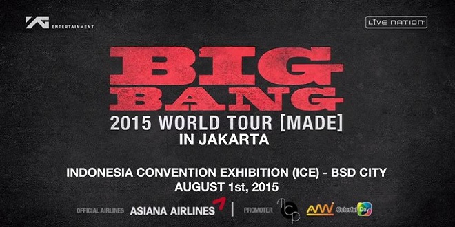 Seperti yang telah diumumkan promotor yaitu, MecimaPro dan AMI Live Entertainment. Konser BIGBANG di Indonesia akan diadakan tanggal 1 Agustus 2015 dan berlokasi di Indonesia Convention Exhibition (ICE), BSD City.