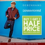 Debenhams Denim Event Beli 1 Jeans GRATIS 1 Jeans dengan 1/2 harga untuk jeans lelaki & casual wear. Promo ini berlaku di :