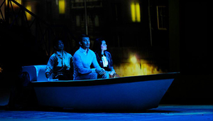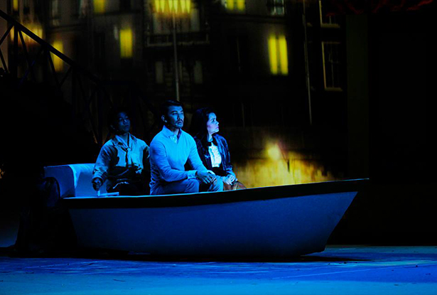 Selain penampilan dari para pemain yang atraktif, yang patut di puji dalam pementasan ini adalah tata panggungnya yang cukup dinamis dan praktis. Pada pementasan ini ditampilkan set utama berupa lanskap sudut kota dengan rumah-rumah bertingkat dan set lain berupa jembatan dan sungai di mana para tokoh berperahu.