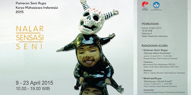 Galeri Nasional Indonesia akan menggelar “Pameran Seni Rupa Karya Mahasiswa Indonesia 2015: Nalar | Sensasi | Seni” pada 9-23 April 2015. Perhelatan ini merupakan wujud realisasi salah satu fungsi Galeri Nasional Indonesia dalam hal melaksanakan pameran dan layanan edukasi di bidang seni rupa.