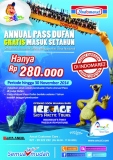 Promo Annual pass hanya Rp.280.000* bisa puas main ke DUFAN selama setahun penuh. Promo berlaku untuk pembelian Annual Pass DUFAN hingga 2015. Pembelian langsung ke loket Dufan, 1 kartu berlaku untuk 1 orang, tidak dapat dipindah tangankan dan pembuatan kartu tdk dpt diwakilkan. Annual Pass berlaku setiap hari (termasuk Weekend & Libur Nasional) dpt digunakan selama 1 tahun dimulai dari tgl. pencetakan kartu.