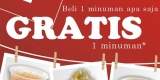*Pembelian 1 minuman akan gratis 1 minuman dengan harga yang sama atau lebih rendah. Syarat dan ketentuan berlaku.